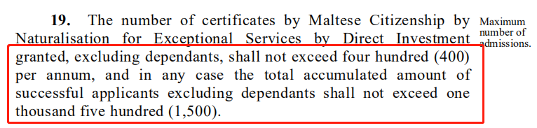 馬耳他入籍項目作為一步到位限量入籍歐盟的項目,一直備受廣泛的關注。但由于受歐盟對移民政策收緊的態度的影響,馬耳他政府不僅對政策做出過進一步調整和細化。經過一系列調整之后,11月20日,馬耳他政府正式公布了通過投資途徑入籍該國的新政策,該項政策規定,入籍名額為1500份,每年最高400份。