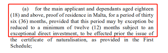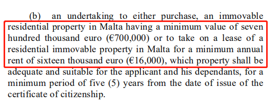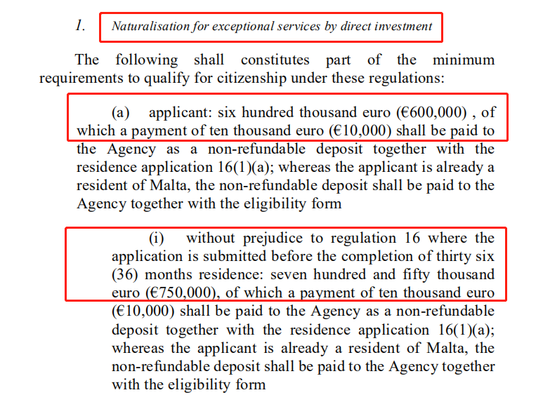在身份文件簽發前,承諾捐款1萬歐元到馬耳他當地的慈善、文化、體育、科學、藝術、動物保護或非政府組織等機構。